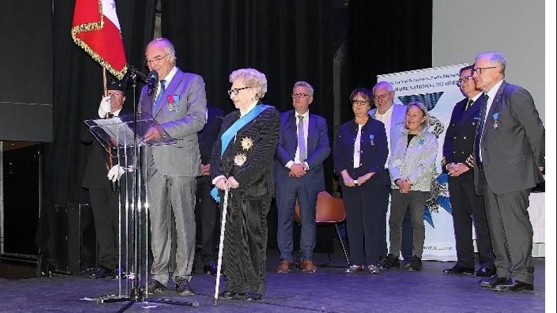 Mme Andrée Gros, grand'croix de l'ordre de la Légion d'honneur et de l'ordre national du Mérite à l'honneur